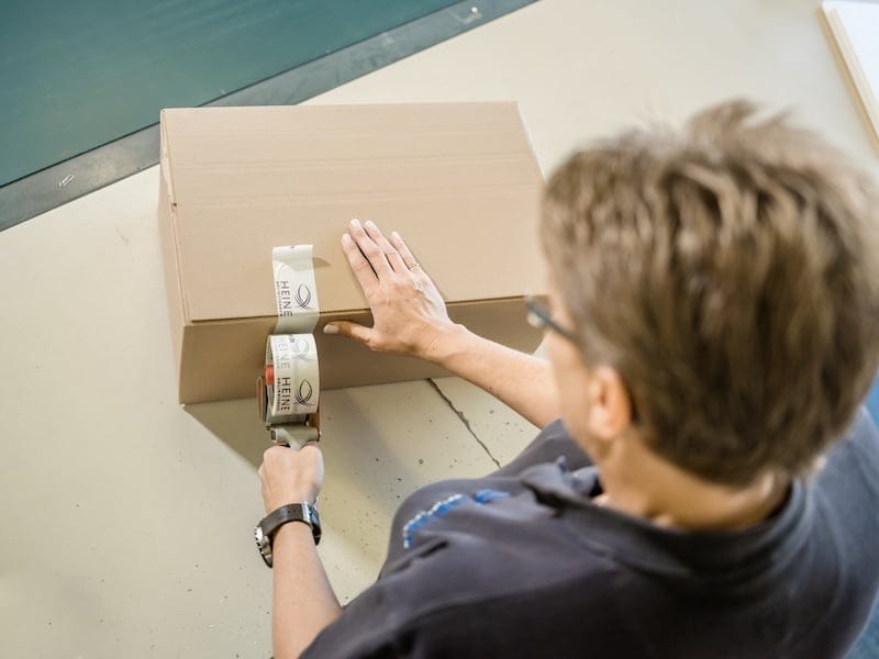 Alles wird sorgfältig in einem mit Paperfloc isolierten Versandkarton verstaut.