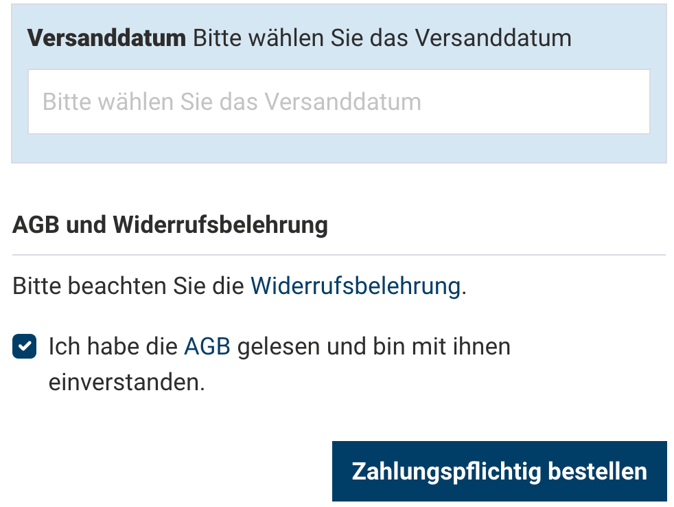 Wählen Sie im Warenkorb (Checkout) Ihren Wunschversandtag